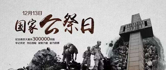 今天是12月13日,是南京大屠杀死难者国家公祭日。今天,我们以国家的名义,祭奠30万死难同胞。