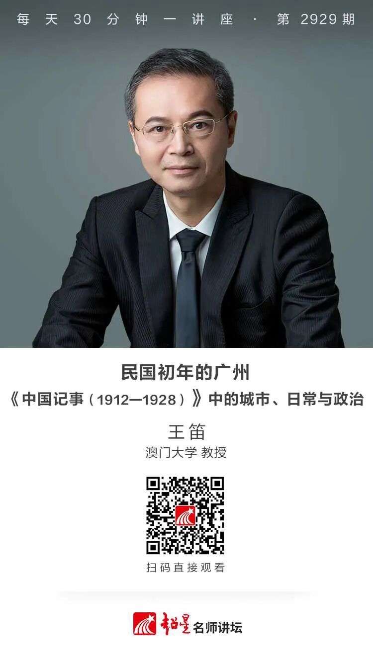 一场讲座,穿越百年广州。王笛教授从西方记录切入,既展现1912-1928年的广州这一革命城市的风云激荡,也捕捉广州市井街巷的烟火人间。在宏观与微观的对话中,重塑我们对近代中国社会转型的认知。